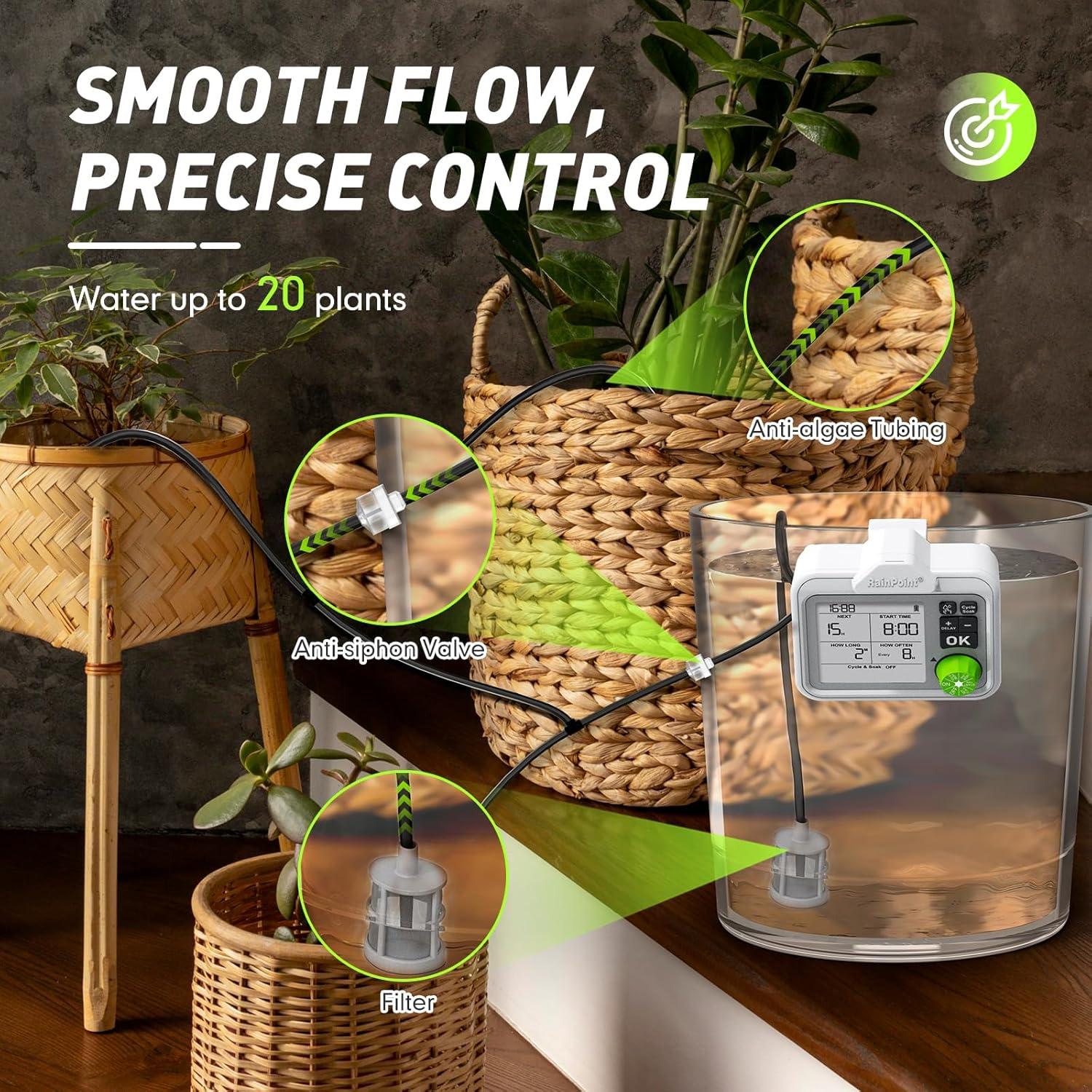 【💧Even Water Distribution】Our uniquely engineered drip line system stands out in the market by markedly enhancing the uniformity of water distribution across emitters. Plants near the water source won't suffer from over-watering, while those farther away won't experience water shortage. The system also equips with an anti-backflow valve to avoid water distribution deviation caused by siphon effect.