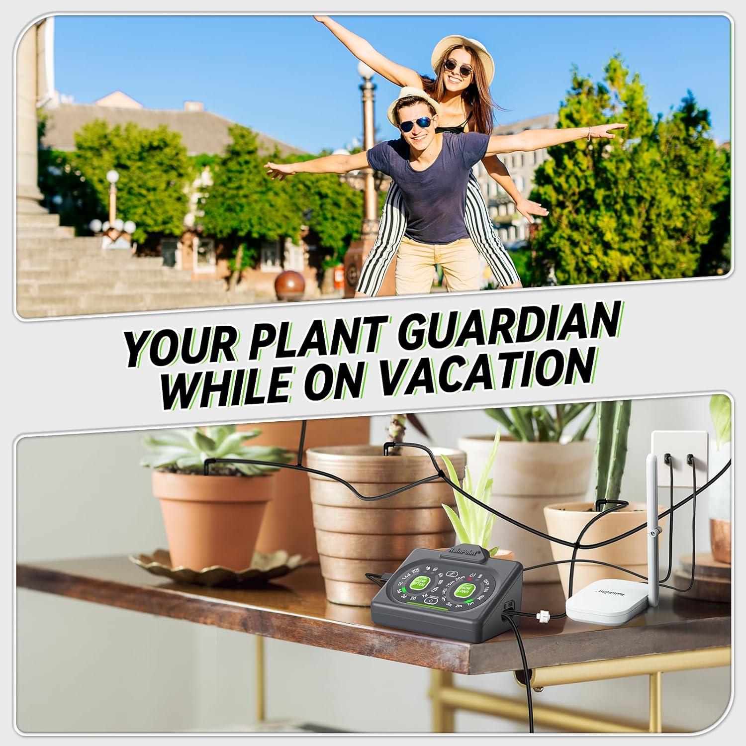 【Compact & Sleek Design】This palm-sized drip system keeps your indoor plants thriving—windowsill herbs, balcony blooms, greenhouse plants, and porch bonsai. All with zero setup hassle, just place and water.