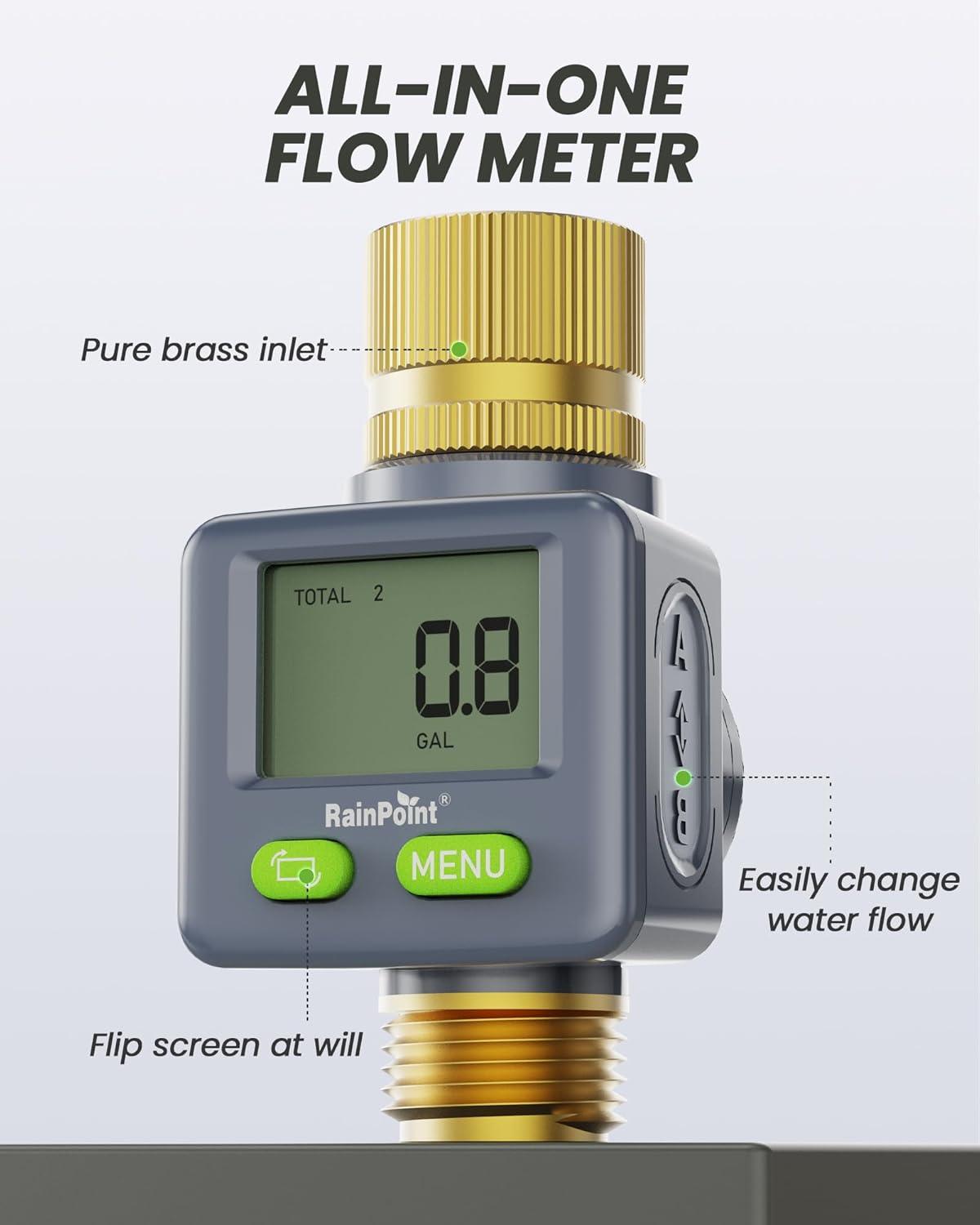 Be the first to review “RAINPOINT Water Flow Meter with Brass Inlet & Outlet, 180° Screen-Flip Water Meter, Measure Gallon/Liter Consumption for RV Filling, Garden Watering, Sprinkler and Hoze Nozzle, 2pcs(Gray)”